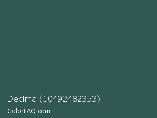 Decimal 10492482353 Color is a dark cyan color and the nearest color is Spectra #2f5a57. Hex code #315853 and RGB value is rgb(49,88,83). In RGB color space, this color is composed of 19% red, 35% green, 33% blue, In CMYK color space, this color is composed of 44% cyan, 0% magenta, 6% yellow , 65% black , In HSL color space, this color has a hue angle of 172° , 28% saturation and 27% lightness.