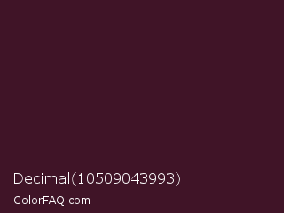 Decimal 10509043993 Color is a very dark rose color and the nearest color is Jon #3b1f1f. Hex code #401427 and RGB value is rgb(64,20,39). In RGB color space, this color is composed of 25% red, 8% green, 15% blue, In CMYK color space, this color is composed of 0% cyan, 69% magenta, 39% yellow , 75% black , In HSL color space, this color has a hue angle of 334° , 52% saturation and 16% lightness.