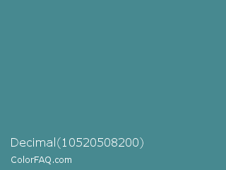 Decimal 10520508200 Color is a normal cyan color and the nearest color is Smalt Blue #51808f. Hex code #478990 and RGB value is rgb(71,137,144). In RGB color space, this color is composed of 28% red, 54% green, 56% blue, In CMYK color space, this color is composed of 51% cyan, 5% magenta, 0% yellow , 44% black , In HSL color space, this color has a hue angle of 186° , 34% saturation and 42% lightness.