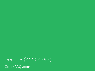Decimal 41104393 Color is a normal green color and the nearest color is Medium Sea Green #3cb371. Hex code #29b561 and RGB value is rgb(41,181,97). In RGB color space, this color is composed of 16% red, 71% green, 38% blue, In CMYK color space, this color is composed of 77% cyan, 0% magenta, 46% yellow , 29% black , In HSL color space, this color has a hue angle of 144° , 63% saturation and 44% lightness.