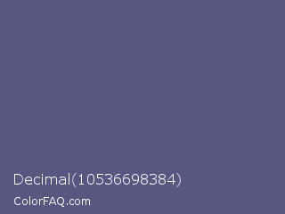 Decimal 10536698384 Color is a normal blue color and the nearest color is Purple Navy #4e5180. Hex code #565882 and RGB value is rgb(86,88,130). In RGB color space, this color is composed of 34% red, 35% green, 51% blue, In CMYK color space, this color is composed of 34% cyan, 32% magenta, 0% yellow , 49% black , In HSL color space, this color has a hue angle of 237° , 20% saturation and 42% lightness.