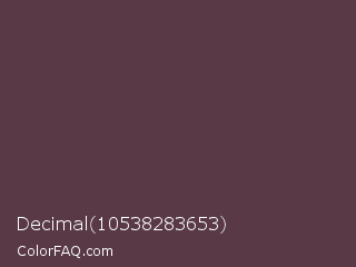 Decimal 10538283653 Color is a dark rose color and the nearest color is Matterhorn #4e3b41. Hex code #583945 and RGB value is rgb(88,57,69). In RGB color space, this color is composed of 35% red, 22% green, 27% blue, In CMYK color space, this color is composed of 0% cyan, 35% magenta, 22% yellow , 65% black , In HSL color space, this color has a hue angle of 337° , 21% saturation and 28% lightness.