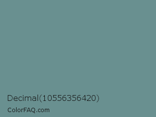Decimal 10556356420 Color is a normal cyan color and the nearest color is Juniper #6d9292. Hex code #699090 and RGB value is rgb(105,144,144). In RGB color space, this color is composed of 41% red, 56% green, 56% blue, In CMYK color space, this color is composed of 27% cyan, 0% magenta, 0% yellow , 44% black , In HSL color space, this color has a hue angle of 180° , 16% saturation and 49% lightness.