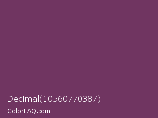 Decimal 10560770387 Color is a normal magenta color and the nearest color is Cosmic #76395d. Hex code #703561 and RGB value is rgb(112,53,97). In RGB color space, this color is composed of 44% red, 21% green, 38% blue, In CMYK color space, this color is composed of 0% cyan, 53% magenta, 13% yellow , 56% black , In HSL color space, this color has a hue angle of 315° , 36% saturation and 32% lightness.