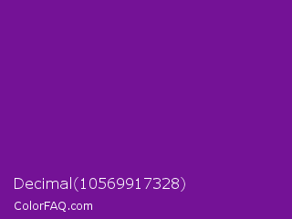 Decimal 10569917328 Color is a normal purple color and the nearest color is Seance #731e8f. Hex code #741296 and RGB value is rgb(116,18,150). In RGB color space, this color is composed of 45% red, 7% green, 59% blue, In CMYK color space, this color is composed of 23% cyan, 88% magenta, 0% yellow , 41% black , In HSL color space, this color has a hue angle of 285° , 79% saturation and 33% lightness.
