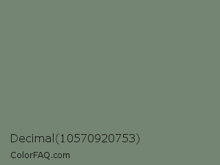 Decimal 10570920753 Color is a normal green color and the nearest color is Smoke #738276. Hex code #758573 and RGB value is rgb(117,133,115). In RGB color space, this color is composed of 46% red, 52% green, 45% blue, In CMYK color space, this color is composed of 12% cyan, 0% magenta, 14% yellow , 48% black , In HSL color space, this color has a hue angle of 113° , 7% saturation and 49% lightness.