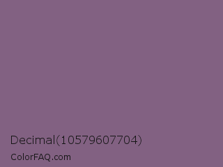 Decimal 10579607704 Color is a normal magenta color and the nearest color is Chinese Violet #856088. Hex code #826182 and RGB value is rgb(130,97,130). In RGB color space, this color is composed of 51% red, 38% green, 51% blue, In CMYK color space, this color is composed of 0% cyan, 25% magenta, 0% yellow , 49% black , In HSL color space, this color has a hue angle of 300° , 15% saturation and 45% lightness.