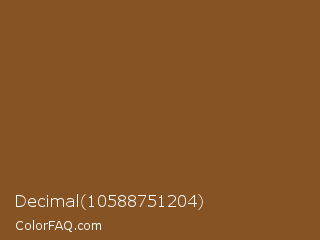 Decimal 10588751204 Color is a normal orange color and the nearest color is Bull Shot #864d1e. Hex code #865324 and RGB value is rgb(134,83,36). In RGB color space, this color is composed of 53% red, 33% green, 14% blue, In CMYK color space, this color is composed of 0% cyan, 38% magenta, 73% yellow , 47% black , In HSL color space, this color has a hue angle of 29° , 58% saturation and 33% lightness.