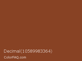 Decimal 10589983364 Color is a normal orange color and the nearest color is Cumin #924321. Hex code #884224 and RGB value is rgb(136,66,36). In RGB color space, this color is composed of 53% red, 26% green, 14% blue, In CMYK color space, this color is composed of 0% cyan, 51% magenta, 74% yellow , 47% black , In HSL color space, this color has a hue angle of 18° , 58% saturation and 34% lightness.