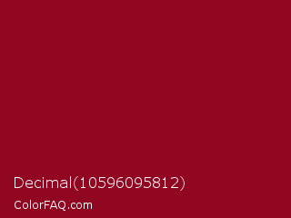 Decimal 10596095812 Color is a dark red color and the nearest color is Pohutukawa #8f021c. Hex code #910620 and RGB value is rgb(145,6,32). In RGB color space, this color is composed of 57% red, 2% green, 13% blue, In CMYK color space, this color is composed of 0% cyan, 96% magenta, 78% yellow , 43% black , In HSL color space, this color has a hue angle of 349° , 92% saturation and 30% lightness.