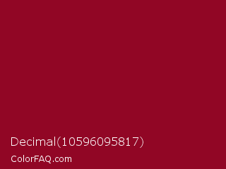 Decimal 10596095817 Color is a dark red color and the nearest color is Paprika #8d0226. Hex code #910625 and RGB value is rgb(145,6,37). In RGB color space, this color is composed of 57% red, 2% green, 15% blue, In CMYK color space, this color is composed of 0% cyan, 96% magenta, 74% yellow , 43% black , In HSL color space, this color has a hue angle of 347° , 92% saturation and 30% lightness.