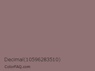 Decimal 10596283510 Color is a normal red color and the nearest color is Opium #8e6f70. Hex code #917274 and RGB value is rgb(145,114,116). In RGB color space, this color is composed of 57% red, 45% green, 45% blue, In CMYK color space, this color is composed of 0% cyan, 21% magenta, 20% yellow , 43% black , In HSL color space, this color has a hue angle of 356° , 12% saturation and 51% lightness.
