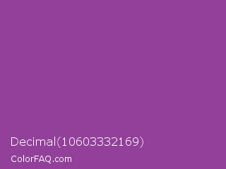 Decimal 10603332169 Color is a normal magenta color and the nearest color is Plum #8e4585. Hex code #924099 and RGB value is rgb(146,64,153). In RGB color space, this color is composed of 57% red, 25% green, 60% blue, In CMYK color space, this color is composed of 5% cyan, 58% magenta, 0% yellow , 40% black , In HSL color space, this color has a hue angle of 295° , 41% saturation and 43% lightness.