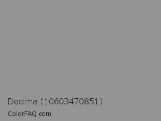 Decimal 10603470851 Color is a normal green color and the nearest color is Mountain Mist #959396. Hex code #929593 and RGB value is rgb(146,149,147). In RGB color space, this color is composed of 57% red, 58% green, 58% blue, In CMYK color space, this color is composed of 2% cyan, 0% magenta, 1% yellow , 42% black , In HSL color space, this color has a hue angle of 140° , 1% saturation and 58% lightness.