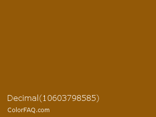 Decimal 10603798585 Color is a dark orange color and the nearest color is Chelsea Gem #9e5302. Hex code #935907 and RGB value is rgb(147,89,7). In RGB color space, this color is composed of 58% red, 35% green, 3% blue, In CMYK color space, this color is composed of 0% cyan, 39% magenta, 95% yellow , 42% black , In HSL color space, this color has a hue angle of 35° , 91% saturation and 30% lightness.