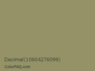 Decimal 10604276099 Color is a normal yellow color and the nearest color is Avocado Pulp #888d65. Hex code #939367 and RGB value is rgb(147,147,103). In RGB color space, this color is composed of 58% red, 58% green, 40% blue, In CMYK color space, this color is composed of 0% cyan, 0% magenta, 30% yellow , 42% black , In HSL color space, this color has a hue angle of 60° , 18% saturation and 49% lightness.