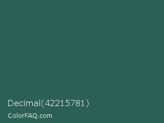 Decimal 42215781 Color is a dark cyan color and the nearest color is Spectra #2f5a57. Hex code #2b6155 and RGB value is rgb(43,97,85). In RGB color space, this color is composed of 17% red, 38% green, 33% blue, In CMYK color space, this color is composed of 56% cyan, 0% magenta, 12% yellow , 62% black , In HSL color space, this color has a hue angle of 167° , 39% saturation and 27% lightness.