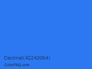 Decimal 42242064 Color is a normal blue color and the nearest color is Blue Crayola #1f75fe. Hex code #2b78f2 and RGB value is rgb(43,120,242). In RGB color space, this color is composed of 17% red, 47% green, 95% blue, In CMYK color space, this color is composed of 82% cyan, 50% magenta, 0% yellow , 5% black , In HSL color space, this color has a hue angle of 217° , 88% saturation and 56% lightness.