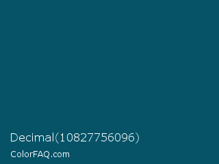 Decimal 10827756096 Color is a very dark cyan color and the nearest color is Blue Stone #016162. Hex code #065368 and RGB value is rgb(6,83,104). In RGB color space, this color is composed of 2% red, 33% green, 41% blue, In CMYK color space, this color is composed of 94% cyan, 20% magenta, 0% yellow , 59% black , In HSL color space, this color has a hue angle of 193° , 89% saturation and 22% lightness.