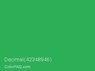 Decimal 42348946 Color is a normal green color and the nearest color is Chateau Green #40a860. Hex code #2bb058 and RGB value is rgb(43,176,88). In RGB color space, this color is composed of 17% red, 69% green, 35% blue, In CMYK color space, this color is composed of 76% cyan, 0% magenta, 50% yellow , 31% black , In HSL color space, this color has a hue angle of 140° , 61% saturation and 43% lightness.