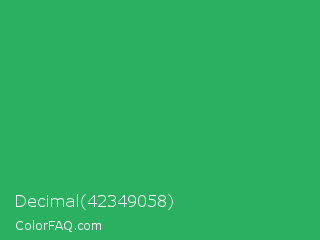 Decimal 42349058 Color is a normal green color and the nearest color is Chateau Green #40a860. Hex code #2bb062 and RGB value is rgb(43,176,98). In RGB color space, this color is composed of 17% red, 69% green, 38% blue, In CMYK color space, this color is composed of 76% cyan, 0% magenta, 44% yellow , 31% black , In HSL color space, this color has a hue angle of 145° , 61% saturation and 43% lightness.