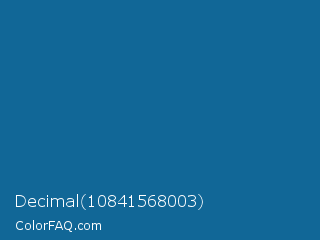 Decimal 10841568003 Color is a normal blue color and the nearest color is Matisse #1b659d. Hex code #116797 and RGB value is rgb(17,103,151). In RGB color space, this color is composed of 7% red, 40% green, 59% blue, In CMYK color space, this color is composed of 89% cyan, 32% magenta, 0% yellow , 41% black , In HSL color space, this color has a hue angle of 201° , 80% saturation and 33% lightness.