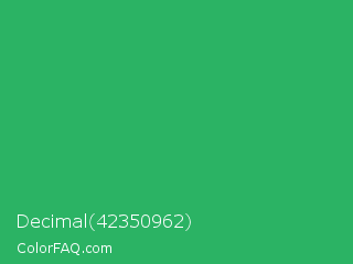 Decimal 42350962 Color is a normal green color and the nearest color is Medium Sea Green #3cb371. Hex code #2bb364 and RGB value is rgb(43,179,100). In RGB color space, this color is composed of 17% red, 70% green, 39% blue, In CMYK color space, this color is composed of 76% cyan, 0% magenta, 44% yellow , 30% black , In HSL color space, this color has a hue angle of 145° , 61% saturation and 44% lightness.