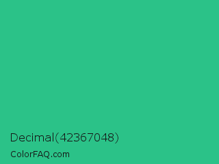 Decimal 42367048 Color is a normal green color and the nearest color is Mountain Meadow #30ba8f. Hex code #2bc288 and RGB value is rgb(43,194,136). In RGB color space, this color is composed of 17% red, 76% green, 53% blue, In CMYK color space, this color is composed of 78% cyan, 0% magenta, 30% yellow , 24% black , In HSL color space, this color has a hue angle of 157° , 64% saturation and 46% lightness.