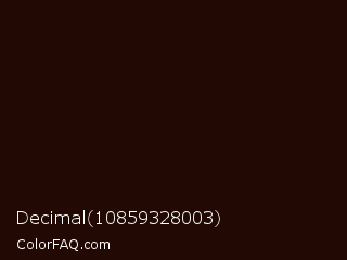 Decimal 10859328003 Color is a almost black red color and the nearest color is Kilamanjaro #240c02. Hex code #220903 and RGB value is rgb(34,9,3). In RGB color space, this color is composed of 13% red, 4% green, 1% blue, In CMYK color space, this color is composed of 0% cyan, 74% magenta, 91% yellow , 87% black , In HSL color space, this color has a hue angle of 12° , 84% saturation and 7% lightness.