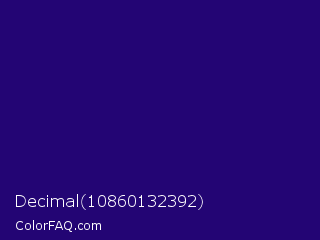 Decimal 10860132392 Color is a dark indigo color and the nearest color is Deep Blue #220878. Hex code #230574 and RGB value is rgb(35,5,116). In RGB color space, this color is composed of 14% red, 2% green, 45% blue, In CMYK color space, this color is composed of 70% cyan, 96% magenta, 0% yellow , 55% black , In HSL color space, this color has a hue angle of 256° , 92% saturation and 24% lightness.