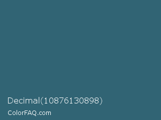 Decimal 10876130898 Color is a normal blue color and the nearest color is Casal #2f6168. Hex code #316474 and RGB value is rgb(49,100,116). In RGB color space, this color is composed of 19% red, 39% green, 45% blue, In CMYK color space, this color is composed of 58% cyan, 14% magenta, 0% yellow , 55% black , In HSL color space, this color has a hue angle of 194° , 41% saturation and 32% lightness.
