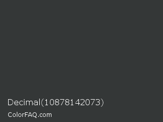 Decimal 10878142073 Color is a very dark cyan color and the nearest color is Onyx #353839. Hex code #343737 and RGB value is rgb(52,55,55). In RGB color space, this color is composed of 20% red, 22% green, 22% blue, In CMYK color space, this color is composed of 5% cyan, 0% magenta, 0% yellow , 78% black , In HSL color space, this color has a hue angle of 180° , 3% saturation and 21% lightness.