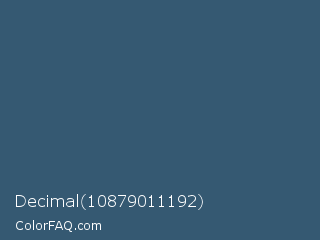 Decimal 10879011192 Color is a normal blue color and the nearest color is Casal #2f6168. Hex code #355972 and RGB value is rgb(53,89,114). In RGB color space, this color is composed of 21% red, 35% green, 45% blue, In CMYK color space, this color is composed of 54% cyan, 22% magenta, 0% yellow , 55% black , In HSL color space, this color has a hue angle of 205° , 37% saturation and 33% lightness.