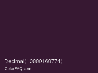 Decimal 10880168774 Color is a very dark magenta color and the nearest color is Dark Purple #301934. Hex code #371832 and RGB value is rgb(55,24,50). In RGB color space, this color is composed of 22% red, 9% green, 20% blue, In CMYK color space, this color is composed of 0% cyan, 56% magenta, 9% yellow , 78% black , In HSL color space, this color has a hue angle of 310° , 39% saturation and 15% lightness.