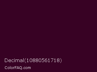 Decimal 10880561718 Color is a very dark magenta color and the nearest color is Toledo #3a0020. Hex code #380224 and RGB value is rgb(56,2,36). In RGB color space, this color is composed of 22% red, 1% green, 14% blue, In CMYK color space, this color is composed of 0% cyan, 96% magenta, 36% yellow , 78% black , In HSL color space, this color has a hue angle of 322° , 93% saturation and 11% lightness.