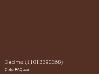 Decimal 11013390368 Color is a dark color and the nearest color is Saddle #4c3024. Hex code #543024 and RGB value is rgb(84,48,36). In RGB color space, this color is composed of 33% red, 19% green, 14% blue, In CMYK color space, this color is composed of 0% cyan, 43% magenta, 57% yellow , 67% black , In HSL color space, this color has a hue angle of 15° , 40% saturation and 24% lightness.