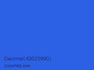 Decimal 43025990 Color is a normal blue color and the nearest color is Royal Blue #4169e1. Hex code #2c61e6 and RGB value is rgb(44,97,230). In RGB color space, this color is composed of 17% red, 38% green, 90% blue, In CMYK color space, this color is composed of 81% cyan, 58% magenta, 0% yellow , 10% black , In HSL color space, this color has a hue angle of 223° , 79% saturation and 54% lightness.
