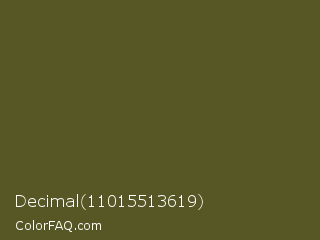 Decimal 11015513619 Color is a dark yellow color and the nearest color is Woodland #4d5328. Hex code #575725 and RGB value is rgb(87,87,37). In RGB color space, this color is composed of 34% red, 34% green, 15% blue, In CMYK color space, this color is composed of 0% cyan, 0% magenta, 57% yellow , 66% black , In HSL color space, this color has a hue angle of 60° , 40% saturation and 24% lightness.