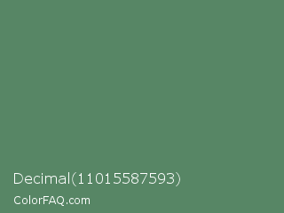Decimal 11015587593 Color is a normal green color and the nearest color is Spring Leaves #578363. Hex code #578665 and RGB value is rgb(87,134,101). In RGB color space, this color is composed of 34% red, 53% green, 40% blue, In CMYK color space, this color is composed of 35% cyan, 0% magenta, 25% yellow , 47% black , In HSL color space, this color has a hue angle of 138° , 21% saturation and 43% lightness.
