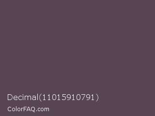 Decimal 11015910791 Color is a normal magenta color and the nearest color is Mortar #504351. Hex code #584553 and RGB value is rgb(88,69,83). In RGB color space, this color is composed of 35% red, 27% green, 33% blue, In CMYK color space, this color is composed of 0% cyan, 22% magenta, 6% yellow , 65% black , In HSL color space, this color has a hue angle of 316° , 12% saturation and 31% lightness.