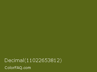 Decimal 11022653812 Color is a dark lime color and the nearest color is Saratoga #555b10. Hex code #586616 and RGB value is rgb(88,102,22). In RGB color space, this color is composed of 35% red, 40% green, 9% blue, In CMYK color space, this color is composed of 14% cyan, 0% magenta, 78% yellow , 60% black , In HSL color space, this color has a hue angle of 71° , 65% saturation and 24% lightness.