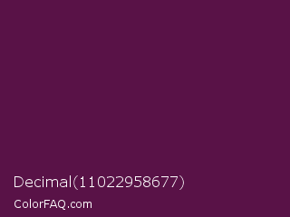 Decimal 11022958677 Color is a very dark magenta color and the nearest color is Wine Berry #591d35. Hex code #591247 and RGB value is rgb(89,18,71). In RGB color space, this color is composed of 35% red, 7% green, 28% blue, In CMYK color space, this color is composed of 0% cyan, 80% magenta, 20% yellow , 65% black , In HSL color space, this color has a hue angle of 315° , 66% saturation and 21% lightness.