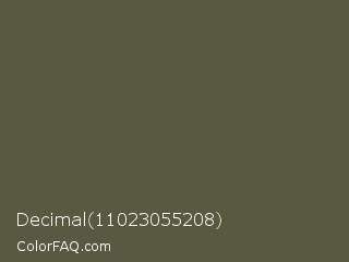 Decimal 11023055208 Color is a dark yellow color and the nearest color is Hemlock #5e5d3b. Hex code #595840 and RGB value is rgb(89,88,64). In RGB color space, this color is composed of 35% red, 35% green, 25% blue, In CMYK color space, this color is composed of 0% cyan, 1% magenta, 28% yellow , 65% black , In HSL color space, this color has a hue angle of 58° , 16% saturation and 30% lightness.