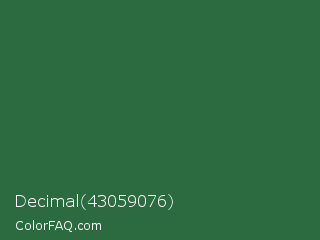 Decimal 43059076 Color is a dark green color and the nearest color is Killarney #3a6a47. Hex code #2c6a40 and RGB value is rgb(44,106,64). In RGB color space, this color is composed of 17% red, 42% green, 25% blue, In CMYK color space, this color is composed of 58% cyan, 0% magenta, 40% yellow , 58% black , In HSL color space, this color has a hue angle of 139° , 41% saturation and 29% lightness.