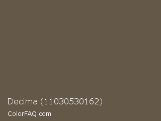 Decimal 11030530162 Color is a normal orange color and the nearest color is Umber #635147. Hex code #645848 and RGB value is rgb(100,88,72). In RGB color space, this color is composed of 39% red, 35% green, 28% blue, In CMYK color space, this color is composed of 0% cyan, 12% magenta, 28% yellow , 61% black , In HSL color space, this color has a hue angle of 34° , 16% saturation and 34% lightness.