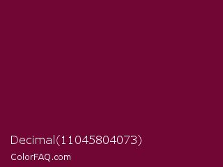 Decimal 11045804073 Color is a dark rose color and the nearest color is Siren #7a013a. Hex code #710635 and RGB value is rgb(113,6,53). In RGB color space, this color is composed of 44% red, 2% green, 21% blue, In CMYK color space, this color is composed of 0% cyan, 95% magenta, 53% yellow , 56% black , In HSL color space, this color has a hue angle of 334° , 90% saturation and 23% lightness.