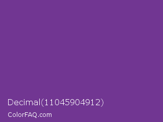 Decimal 11045904912 Color is a normal purple color and the nearest color is Purple Heart #69359c. Hex code #713692 and RGB value is rgb(113,54,146). In RGB color space, this color is composed of 44% red, 21% green, 57% blue, In CMYK color space, this color is composed of 23% cyan, 63% magenta, 0% yellow , 43% black , In HSL color space, this color has a hue angle of 278° , 46% saturation and 39% lightness.