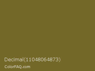 Decimal 11048064873 Color is a normal yellow color and the nearest color is Crete #737829. Hex code #746929 and RGB value is rgb(116,105,41). In RGB color space, this color is composed of 45% red, 41% green, 16% blue, In CMYK color space, this color is composed of 0% cyan, 9% magenta, 65% yellow , 55% black , In HSL color space, this color has a hue angle of 51° , 48% saturation and 31% lightness.
