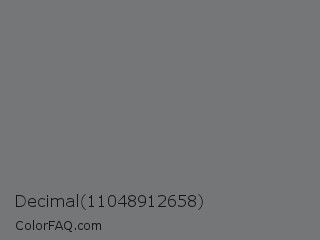 Decimal 11048912658 Color is a normal blue color and the nearest color is Sonic Silver #757575. Hex code #757678 and RGB value is rgb(117,118,120). In RGB color space, this color is composed of 46% red, 46% green, 47% blue, In CMYK color space, this color is composed of 3% cyan, 2% magenta, 0% yellow , 53% black , In HSL color space, this color has a hue angle of 220° , 1% saturation and 46% lightness.