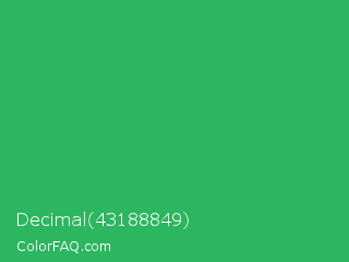 Decimal 43188849 Color is a normal green color and the nearest color is Medium Sea Green #3cb371. Hex code #2cb65f and RGB value is rgb(44,182,95). In RGB color space, this color is composed of 17% red, 71% green, 37% blue, In CMYK color space, this color is composed of 76% cyan, 0% magenta, 48% yellow , 29% black , In HSL color space, this color has a hue angle of 142° , 61% saturation and 44% lightness.